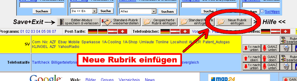 Neue Rubrik einfügen